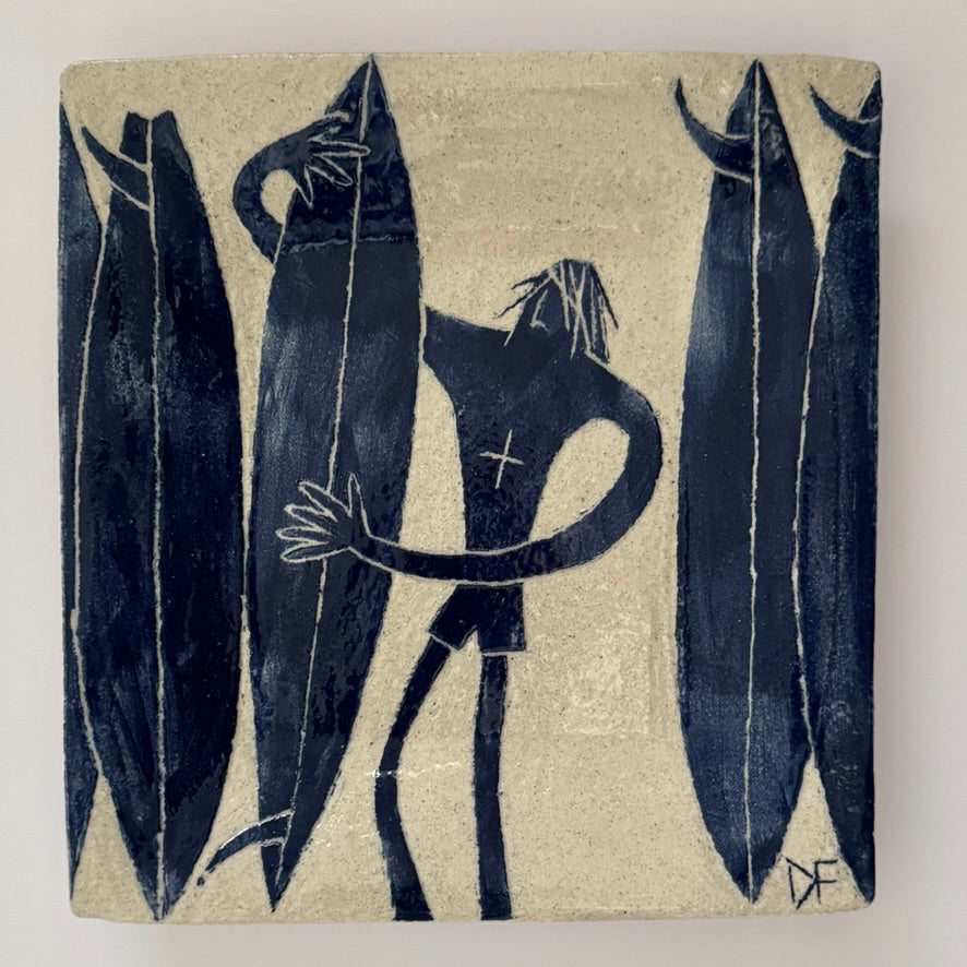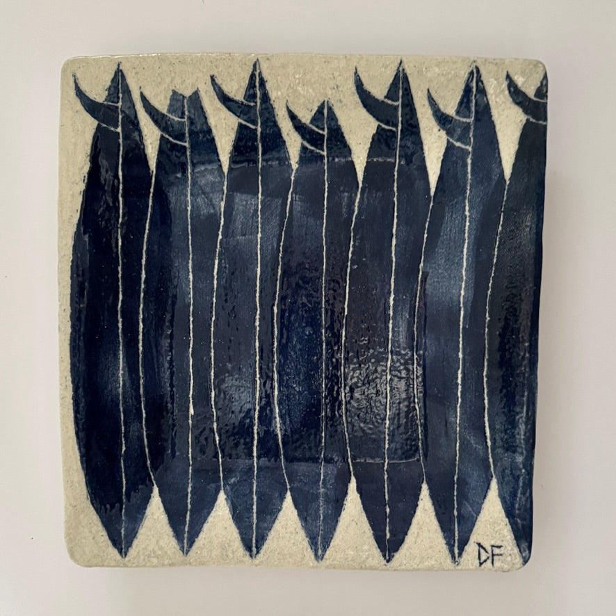 Glazed stoneware ceramic. Sandy white raku with carved slip decoration.